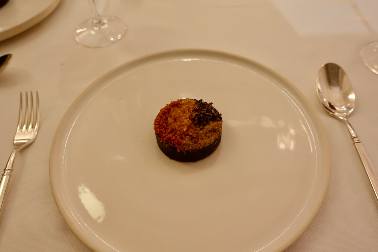 After so many exciting savory dishes, we were keen to see what the chef hand in mind for dessert. Again, we had a choice, this time between two fruity creations and a chocolate one. We did not need long to decide as we are both chocolate aficionados. We got a truly imaginative composition made of sorbet, shortbread and coffee meringue, a real treat!